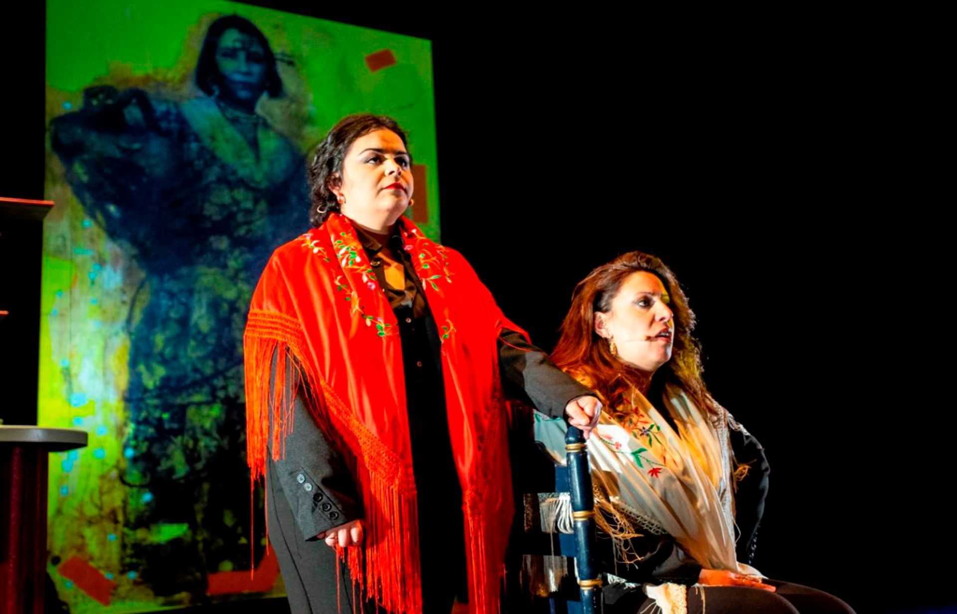 Es por eso que no sólo contamos con la voz inquietante de dos magníficas intérpretes como NANE RAMOS y VICKY GONZÁLEZ, el arte de la joven bailaora AROA BRAVO, de la interpretación y dirección musical del tocaor PERICO de la PAULA o del genio inspirado en la percusión de MARIO HOLGADO, sino que hemos dotado al espectáculo -de la mano del escritor MARINO GONZÁLEZ MONTERO- de una DRAMATURGIA llena de POESÍA donde se relatan y resumen las vidas de tantas y tantas mujeres a lo largo de la historia del flamenco. Del mismo modo, contamos con la magnífica visión pictórica de CARMEN RODRÍGUEZ PALOP que nos ofrece decenas de RETRATOS DE ESTAS MUJERES únicas e irrepetibles.