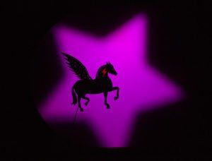 Lapicera y Tijereta fabrican marionetas de sombras en su taller donde hay un teatrillo de madera por el que entran y salen para dar vida a la luz. Un día son sorprendidas por la llamada de la diosa griega Eurínome y aquí empiezan una serie de historias de fantasía, aventura y amor sobre la mitología griega: la deslumbrante creación del Universo, Penélope tejiendo día y noche a la espera de su amado, Pegaso cabalgando los cielos en busca de libertad, la soledad del Minotauro encerrado en el laberinto, y las flechas traviesas del dios Eros.
