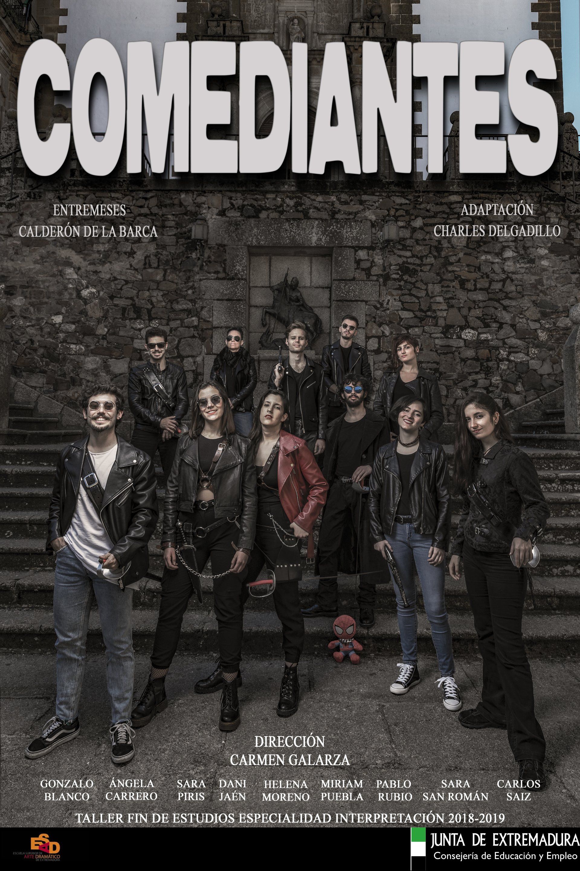 En Comediantes, un grupo de jóvenes intérpretes pone en escena, conjugando ambiente de época indeterminado y la actualidad, cuatro entremeses de Calderón de la Barca versionados por Charles Delgadillo: La pedidora, El convidado, El dragoncillo y La casa de los linajes. Nueve interpretes y cuarenta y dos personajes recorren una estructura dramática llena de acciones rítmicas, vertiginosas y brillantes. Si a ello le añadimos los versos, el humor y la ironía de Charles Delgadillo, una puesta en escena que descubre y potencia constantemente el artificio teatral y la fuerza pendenciera y comprometida del alumnado, obtenemos como resultado el Taller de Fin de Estudios de la Especialidad de Interpretación de la ESAD de Extremadura.